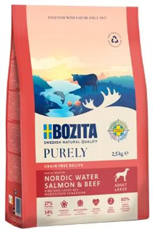 RIND & LACHS aus nordischen Gewässern - Diese getreidefreie Rezeptur für größere Rassen vereint zwei tierische Proteinquellen. Das Futter enthält leckeren, frisch zubereiteten Lachs mit einem hohen Anteil an Nährstoffen und natürlichen Fettsäuren sowie Rind von schwedischen Höfen. Mit nur zwei tierischen Proteinquellen ist es besonders für Hunde geeignet, die empfindlich auf andere tierische Proteine reagieren. Die Krokettengröße ist passend für größere Rassen.